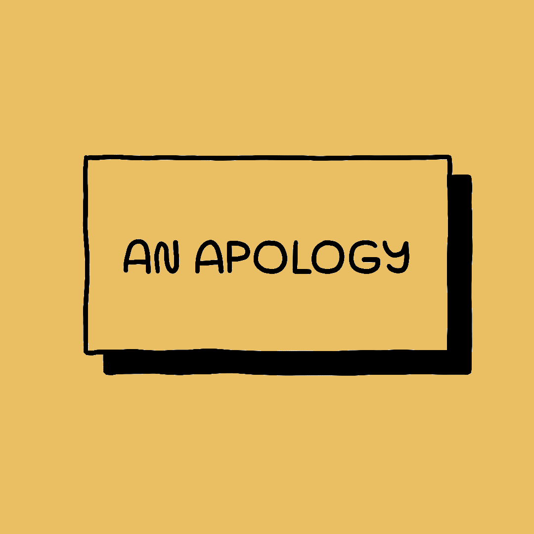 In the notes section of your shopping cart, tell me the exact phrasing of your apology. Or, if you want Jesus (me) to take the wheel, explain the situation and I'll craft the apology line. That'd be fun.